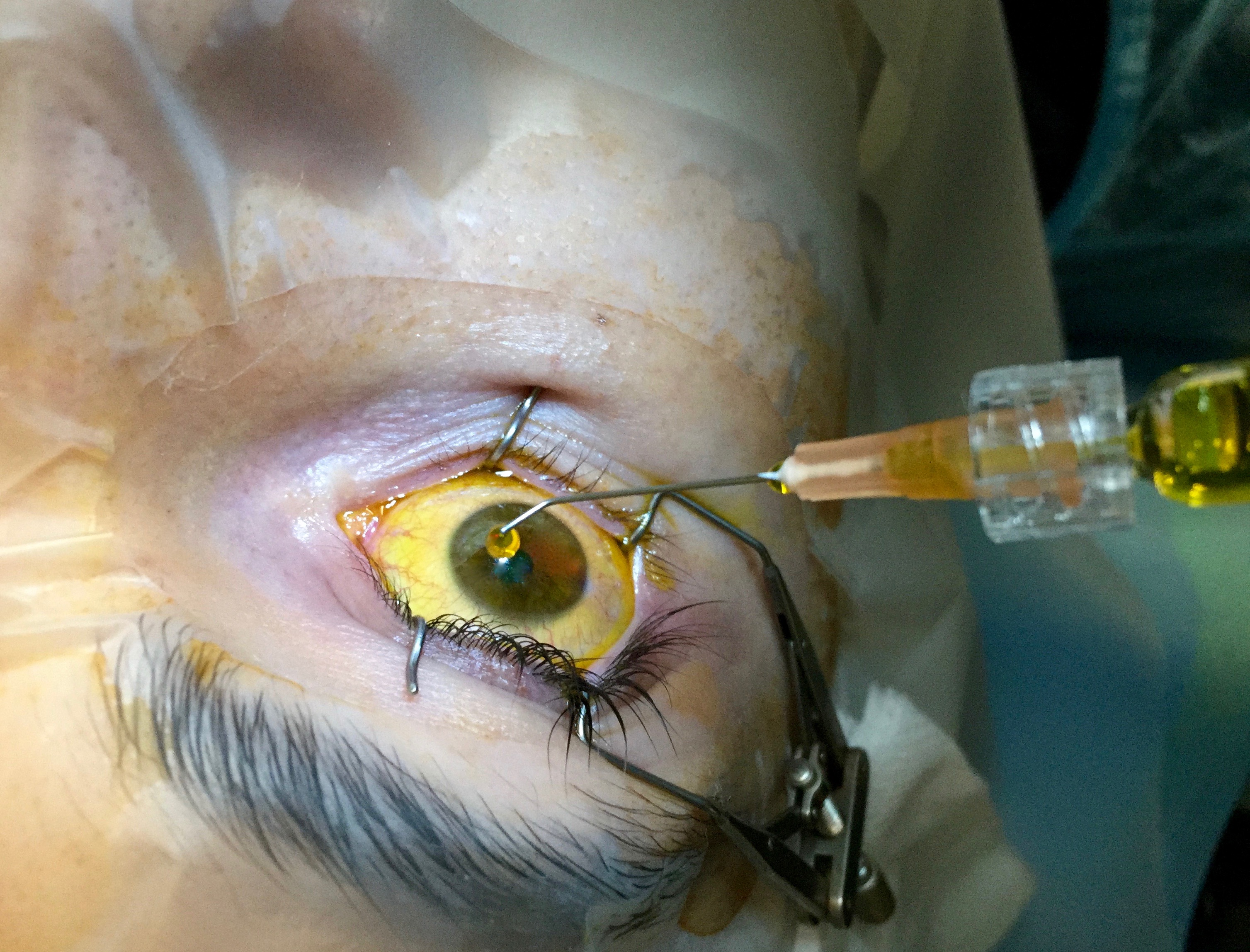 Traitement du collagène (pontage chimique des fibrilles par des liaisons covalentes) sous anesthésie locale topique et en ambulatoire.